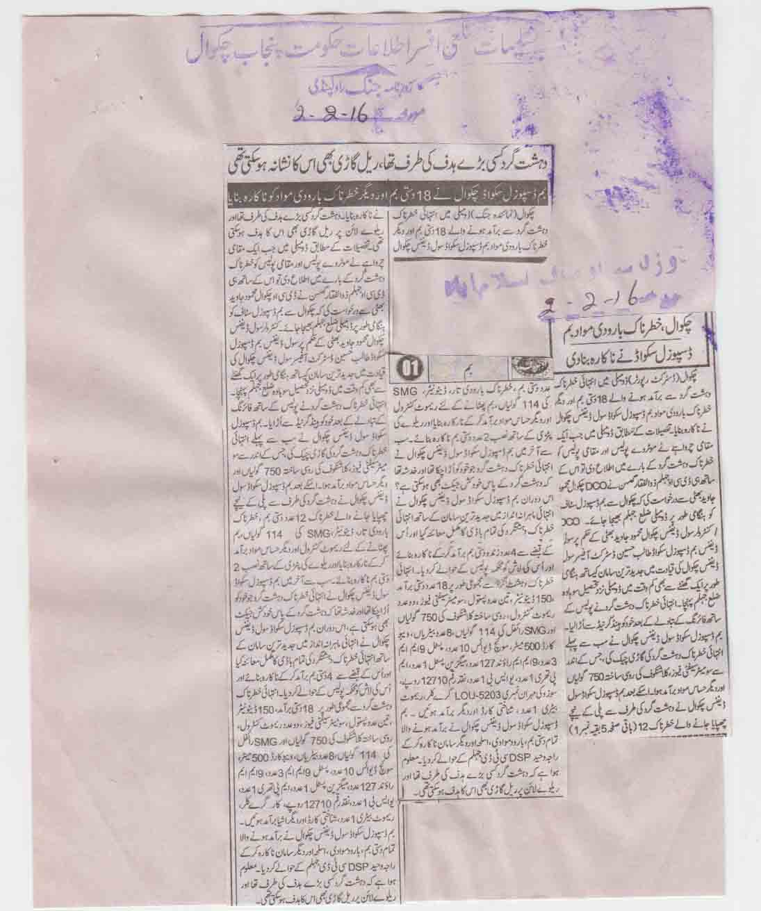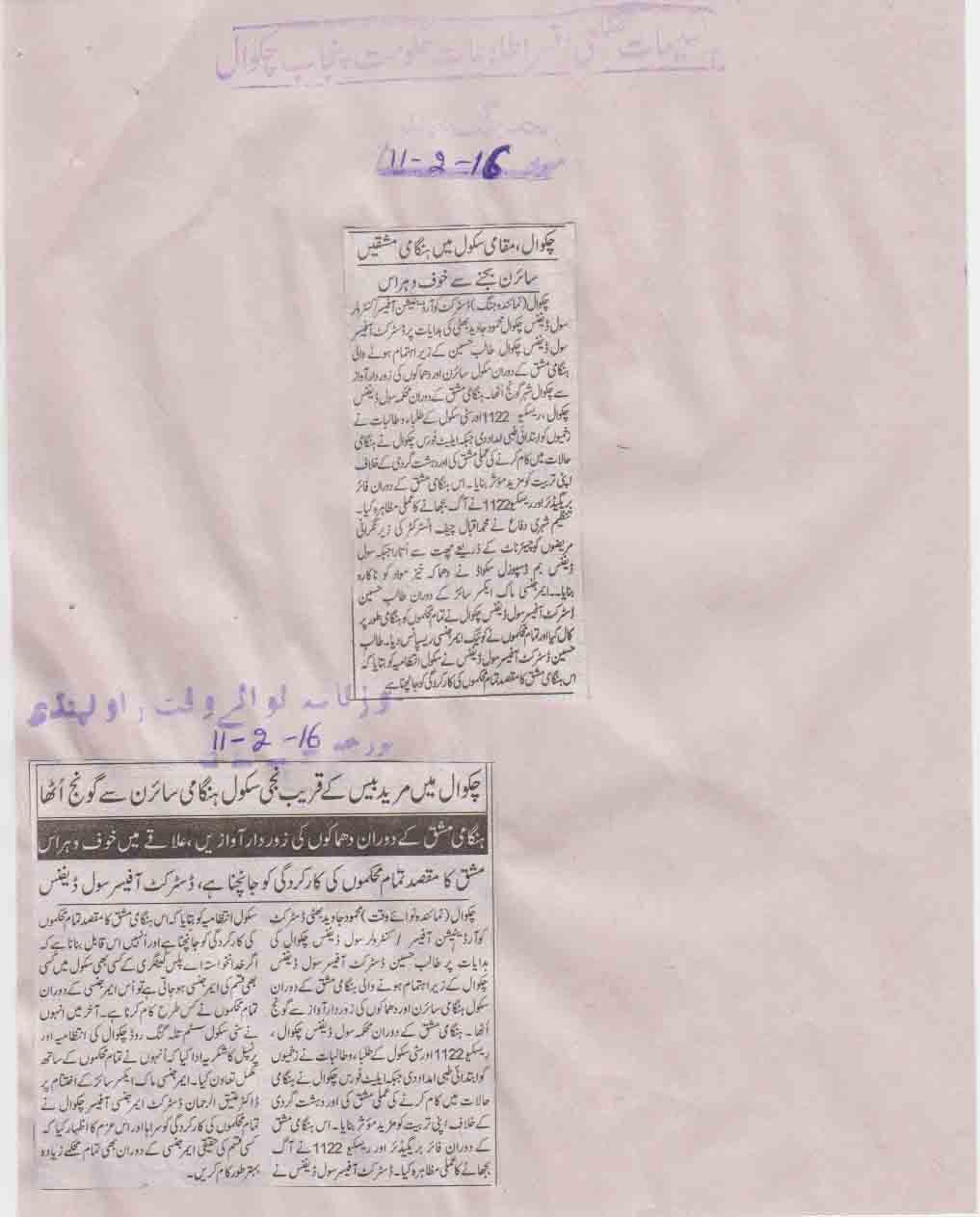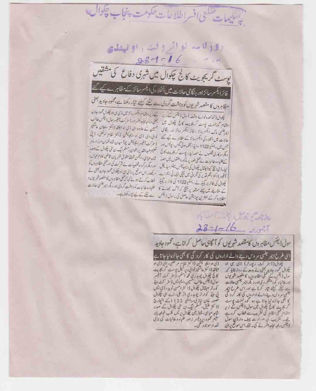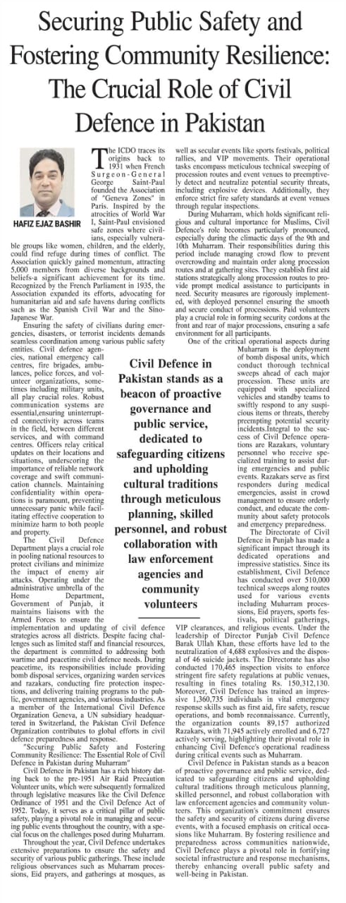 Press Clipping / Article on the role of Civil Defence Punjab